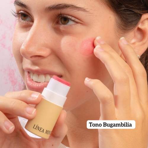 Aplicar barra multiusos en área deseada del rostro. Puede aplicarse con dedos, usando la barra directo en el rostro o con brocha.
